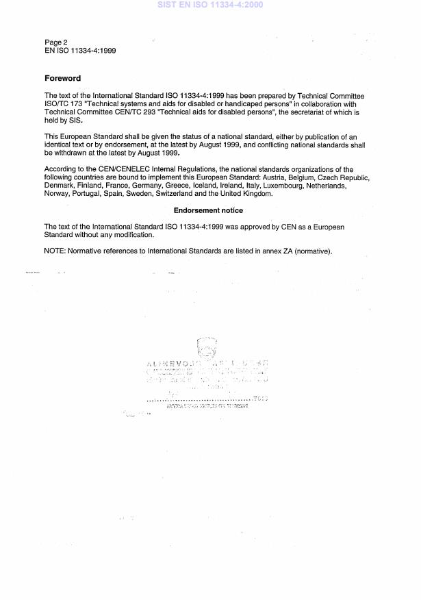 EN ISO 11334-4:1999 is classified under the following ICS (International Classification for Standards) categories: 11.180 - Aids for disabled or handicapped persons. The ICS classification helps identify the subject area and facilitates finding related standards.