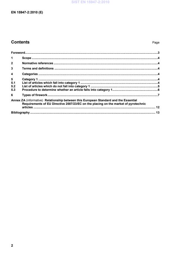 Relationship between this European Standard and the Essential Requirements of EU Directive 2007/23/EC on the placing on the market of pyrotechnic articles . 12Bibliography . 13 SIST EN 15947-2:2010