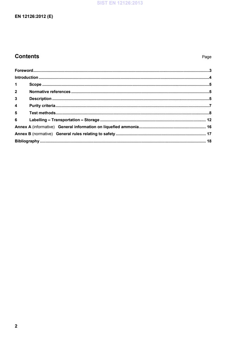 EN 12126:2012 is a standard published by the European Committee for Standardization (CEN). Its full title is "Chemicals used for treatment of water intended for human consumption - Liquefied ammonia". This standard covers: This European Standard is applicable to liquefied ammonia used for treatment of water intended for human consumption. It describes the characteristics and specifies the requirements of liquefied ammonia and refers to the corresponding analytical methods. It gives information for its use in water treatment. It also determines the rules relating to the safe handling and use of liquefied ammonia (see Annex B).