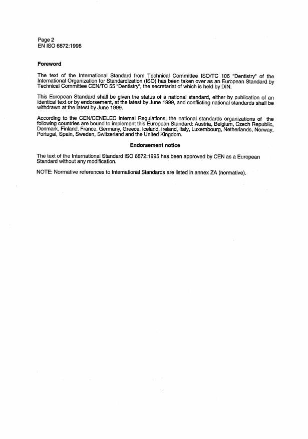EN ISO 6872:1998 has the following relationships with other standards: It is inter standard links to EN ISO 6872:2008. Understanding these relationships helps ensure you are using the most current and applicable version of the standard.