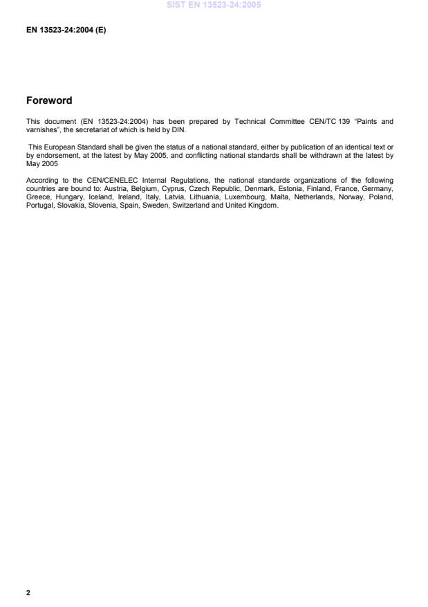 This document (EN 13523-24:2004) has been prepared by Technical Committee CEN/TC 139 “Paints and