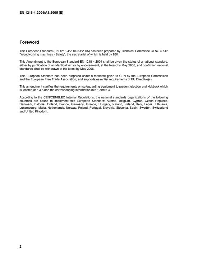 This Amendment to the European Standard EN 1218-4:2004 shall be given the status of a national standard,