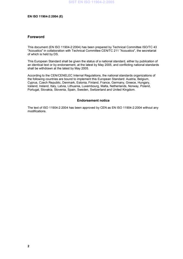 This document (EN ISO 11904-2:2004) has been prepared by Technical Committee ISO/TC 43 "Acoustics" in collaboration with Technical Committee CEN/TC 211 "Acoustics", the secretariat of which is held by DS.