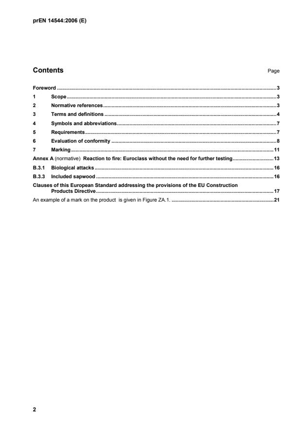 prEN 14544 is a draft published by the European Committee for Standardization (CEN). Its full title is "Timber structures - Strength graded structural timber with round cross-section - Requirements". This standard covers: This European Standard lays down the requirements for visual graded structural timber with round cross-sections, barked of unbarked and cut on length but otherwise not machined. This standard specifies tolerances on sizes and identifies the characteristics for which, as a minimum, limits shall be given in visual grading rules. It also proposes two grades recommended where no national grades exist. Structural timber treated against fire or biological attack is not covered in this standard.