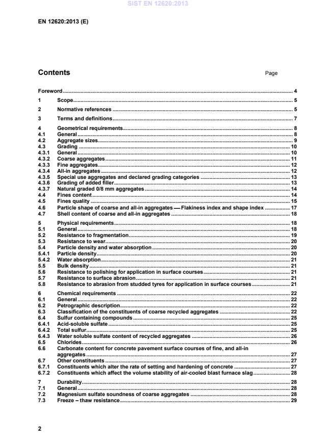 NOTE Requirements for lightweight aggregates are specified in prEN 13055. Requirements for the declaration of the potential of aggregates to release regulated dangerous substances are currently under development. Until such time as these are finalised, attention should be paid to requirements at the place of use. 2 Normative references The following documents, in whole or in part, are normatively referenced in this document and are indispensable for its application. For dated references, only the edition cited applies. For undated references, the latest edition of the referenced document (including any amendments) applies. EN 196-2, Methods of testing cement — Part 2: Chemical analysis of cement EN 932-3, Tests for general properties of aggregates — Part 3: Procedure and terminology for simplified petrographic description SIST EN 12620:2013