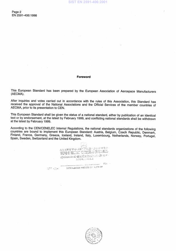 EN 2591-406:1998 has the following relationships with other standards: It is inter standard links to EN 3155-075:2022, EN 3660-016:2009, EN 3155-024:2006, EN 3155-026:2019, EN 3155-027:2019, EN 3155-045:2019, EN 3660-019:2009, EN 3155-032:2009, EN 3155-064:2009, EN 3155-063:2009, EN 4531-001:2012, EN 3660-017:2009, EN 3660-026:2009, EN 3155-054:2006, EN 3660-005:2023. Understanding these relationships helps ensure you are using the most current and applicable version of the standard.