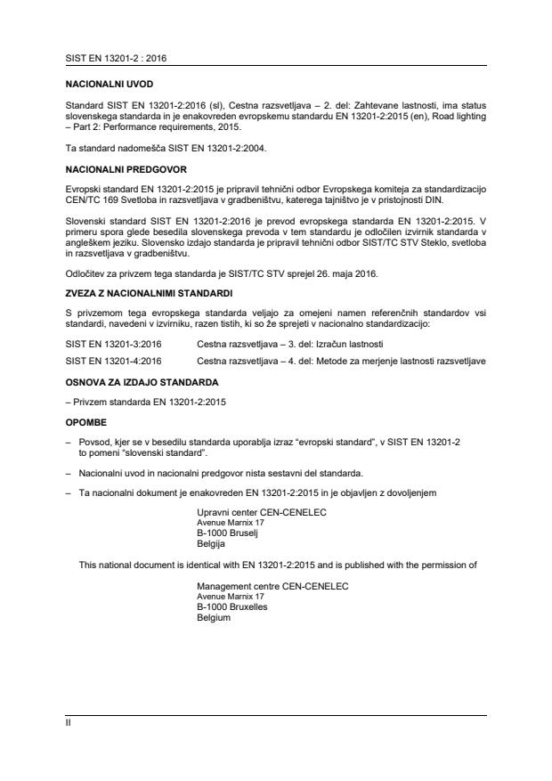 2003-01.Slovenski inštitut za standardizacijo. Razmnoževanje celote ali delov tega standarda ni dovoljeno.Cestna razsvetljava - 2. del: Zahtevane lastnostiStraßenbeleuchtung - Teil 2: GütemerkmaleÉclairage public - Partie 2: Exigences de performanceRoad lighting - Part 2: Performance requirements93.080.40Street lighting and related equipmentICS:Ta slovenski standard je istoveten z:EN 13201-2:2015SIST EN 13201-2:2016en,fr,de01-junij-2016SIST EN 13201-2:2016SLOVENSKI