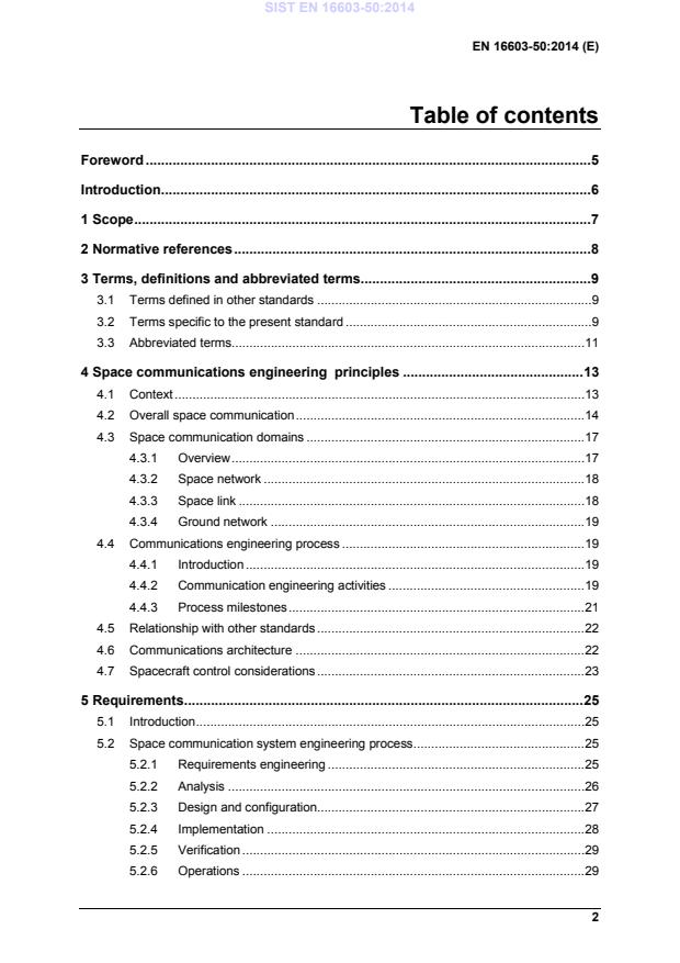 EN 16603-50:2014 is a standard published by the European Committee for Standardization (CEN). Its full title is "Space engineering - Communications". This standard covers: This Standard specifies the requirements for the development of the endtoend data communications system for spacecraft. Specifically, this standard specifies: - The terminology to be used for space communication systems engineering. - The activities to be performed as part of the space communication system engineering process, in accordance with the ECSS-E-ST-10 standard. - Specific requirements on space communication systems in respect of functionality and performance. The communications links covered by this Standard are the spacetoground and spacetospace links used during spacecraft operations, and the communications links to the spacecraft used during the assembly, integration and test, and operational phases. Spacecraft endtoend communication systems comprise components in three distinct domains, namely the ground network, the space link, and the space network. This Standard covers the components of the space link and space network in detail. However, this Standard only covers those aspects of the ground network that are necessary for the provision of the endtoend communication services. NOTE Other aspects of the ground network are covered in ECSS-E ST 70. This Standard may be tailored for the specific characteristics and constraints of a space project in conformance with ECSS-S ST 00.