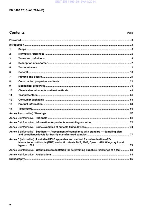 EN 1400:2013+A1:2014 is a standard published by the European Committee for Standardization (CEN). Its full title is "Child use and care articles - Soothers for babies and young children - Safety requirements and test methods". This standard covers: This European Standard specifies safety requirements relating to the materials, construction, performance, packaging and product information for soothers. This European Standard is applicable to products that resemble or function as a soother. Some soothers may be marketed with other functions. This standard is applicable to these products (some examples are given in Annex C). This European Standard does not apply to products designed for specialist clinical medical applications, e.g. those relating to Pierre-Robin Syndrome or premature babies (see Annex C). The standard is not applicable to feeding teats. Safety requirements and test methods for feeding teats are included in all parts of EN 14350 [2], [3].