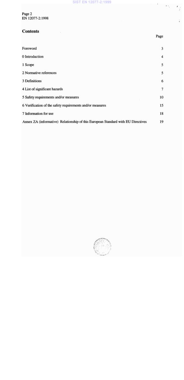 EN 12077-2:1998 is associated with the following European legislation: EU Directives/Regulations: 98/37/EC; Standardization Mandates: M/BC/CEN/91/1. When a standard is cited in the Official Journal of the European Union, products manufactured in conformity with it benefit from a presumption of conformity with the essential requirements of the corresponding EU directive or regulation.