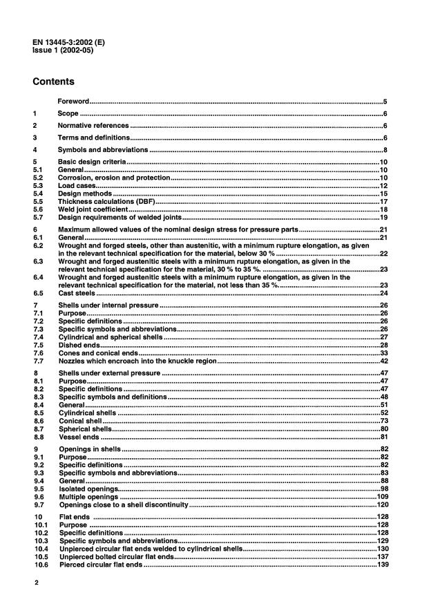 EN 13445-3:2002 is a standard published by the European Committee for Standardization (CEN). Its full title is "Unfired pressure vessels - Part 3: Design". This standard covers: This part of this European Standard specifies requirements for the design of unfired pressure vessels covered by EN 13445-1 and constructed of steels in accordance with EN 13445-2. Annex C of EN 13445-5 specifies requirements for the design of access and inspection openings, closing mechanisms and special locking elements.