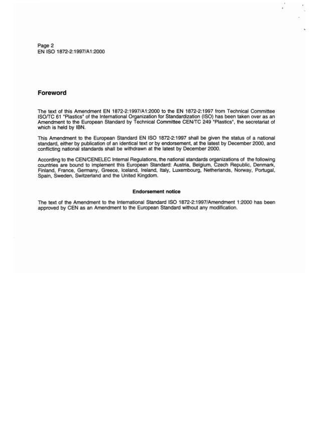 test specimens and determination of properties - Amendment 1 (ISO 1872-2:1997/AM