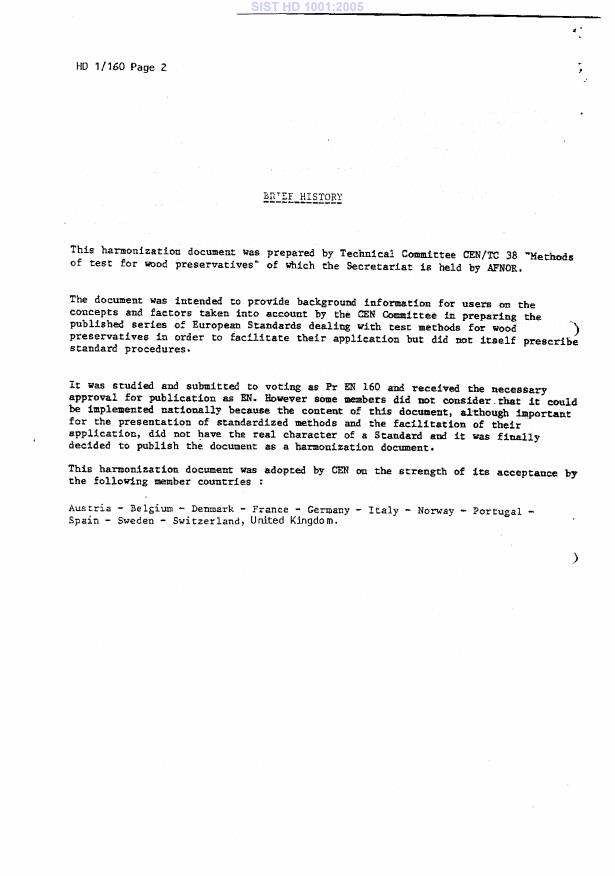 HD 1001:1984 is a standardization document published by the European Committee for Standardization (CEN). Its full title is "General introductory document on European (or CEN) methods of tests for wood preservatives". This standard covers: General introductory document on European (or CEN) methods of tests for wood preservatives