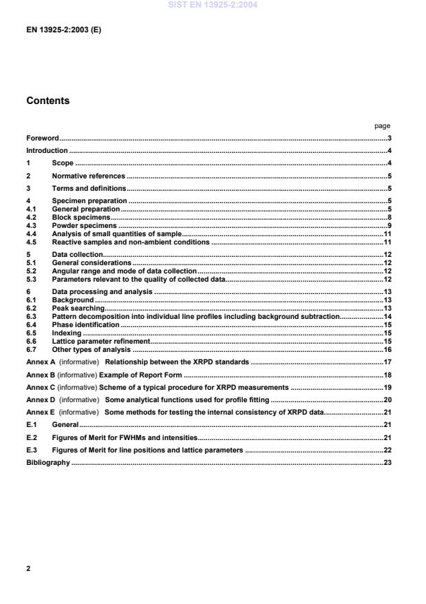 Some methods for testing the internal consistency of XRPD data.21E.1General.21E.2Figures of Merit for FWHMs and intensities.21E.3Figures of Merit for line positions and lattice parameters.22Bibliography.23SIST EN 13925-2:2004