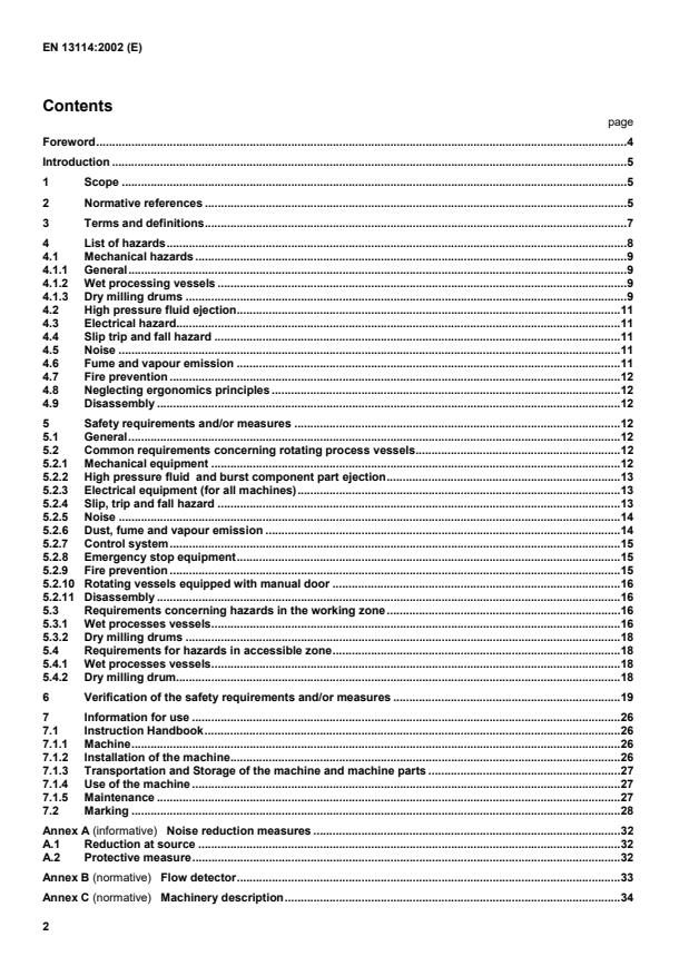 1.1 This European standard specifies safety requirements for design, construction, operation, adjustment, setting, cleaning and maintenance of a machine. 1.2 This standard covers the following machines (see annex C and figures 1 and 2 for typical configurations): a) horizontal rotating vessels ; b) inclined rotating vessels. 1.3 This standard does not apply to machines using substances containing solvent, that would generate fume and/or vapour detrimental to health, or that may lead to fire or explosive atmosphere 1.4 This standard takes account of intended use, foreseeable misuse, component and systems failure. The machines are for fixed installation. 1.5 This European standard applies to the machines manufactured after its date of issue. 1.6 This standard does not establish any requirements for electromagnetic disturbances. NOTE Directive 94/9/EC concerning equipment and protective systems intended for use in potentially explosive atmospheres can be applicable to the type of machine or equipment covered by this European Standard. The present standard does not necessarily comply with Directive 94/9/EC. Additional safety requirements in a future revision of this standard may be necessary to satisfy Directive 94/9/EC.