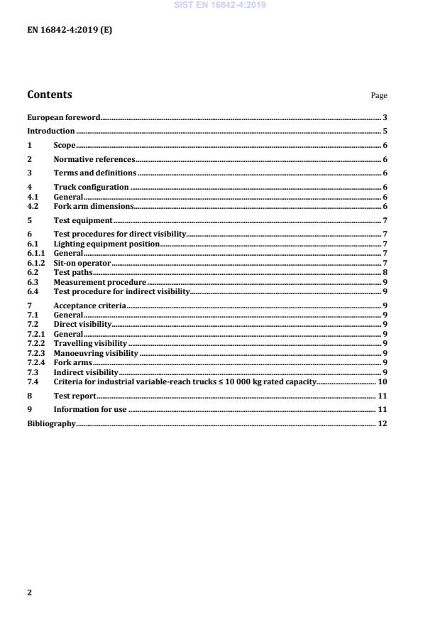Ta evropski standard določa zahteve in preskusne postopke za 360-stopinjsko vidno polje voznika pri samognanih spremenljivih industrijskih tovornih vozilih s kontejnerji (v nadaljevanju »vozilo«) z zmogljivostjo ≤ 10.000 kg v skladu s standardom ISO 5053-1 ter je namenjen za uporabo skupaj s standardom FprEN 16842-1.