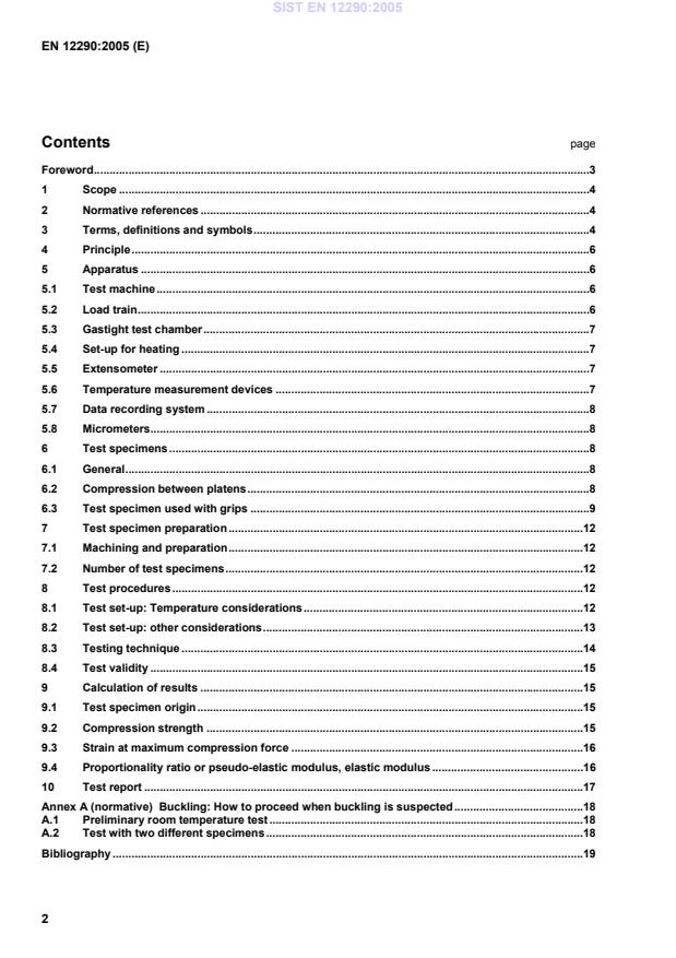 EN 12290:2005 is a standard published by the European Committee for Standardization (CEN). Its full title is "Advanced technical ceramics - Mechanical properties of ceramic composites at high temperature under inert atmosphere - Determination of compression properties". This standard covers: This European Standard specifies the conditions for determination of compression properties of ceramic matrix composite materials with continuous fibre reinforcement for temperatures up to 2 000 °C under vacuum or a gas atmosphere which is inert to the material under test. NOTE The use of these environments is aimed at avoiding changes of the material to be tested due to chemical reaction with its environment during the test. This European Standard applies to all ceramic matrix composites with a continuous fibre reinforcement, unidirectional (1D), bidirectional (2D), and tridirectional (xD, with 2 < x * 3), loaded along one principal axis of reinforcement. Two types of compression are distinguished: a) compression between platens; b) compression using grips.