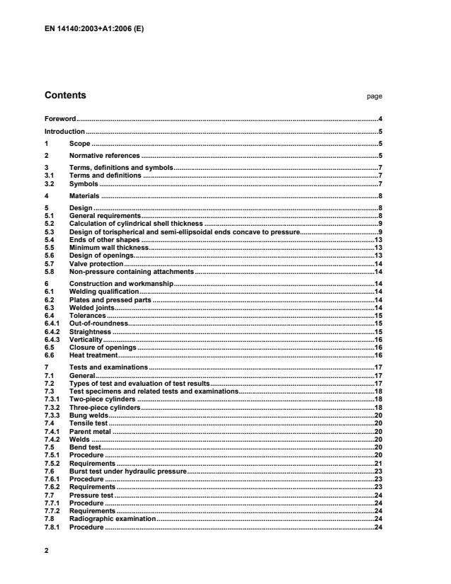 EN 14140:2003+A1:2006 is a standard published by the European Committee for Standardization (CEN). Its full title is "LPG equipment and accessories - Transportable refillable welded steel cylinders for LPG - Alternative design and construction". This standard covers: This European Standard specifies the minimum requirements for the design, construction and testing during manufacture of transportable refillable welded steel Liquefied Petroleum Gas (LPG) cylinders, of water capacity from 0,5 l up to and including 150 l, exposed to ambient temperatures. It allows alternative design and construction methods to those required in EN 1442. This European Standard applies only to cylinders with a circular cross-section. All pressures are gauge unless otherwise stated.