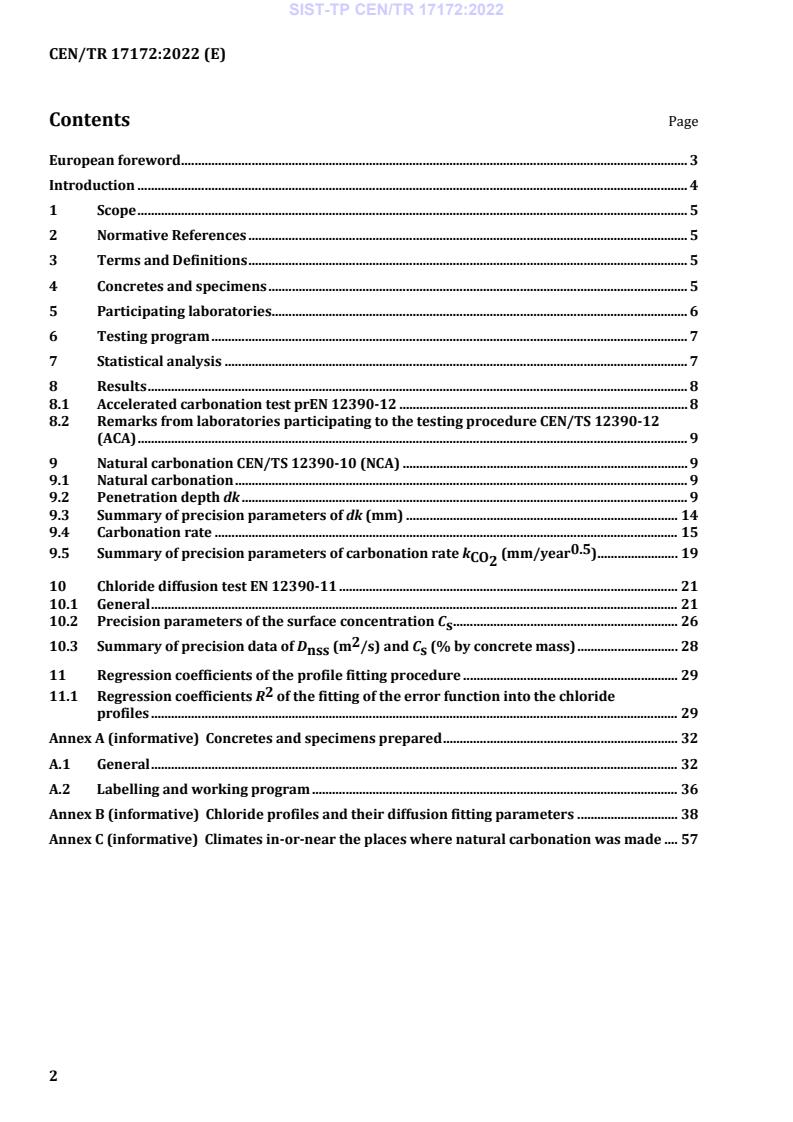 Keywords: CEN/TR 17172:2022, chloride penetration, carbonation, validation testing program, EN 206, EN 12390-11, CEN/TS 12390-10, robustness, repeatability, reproducibility.