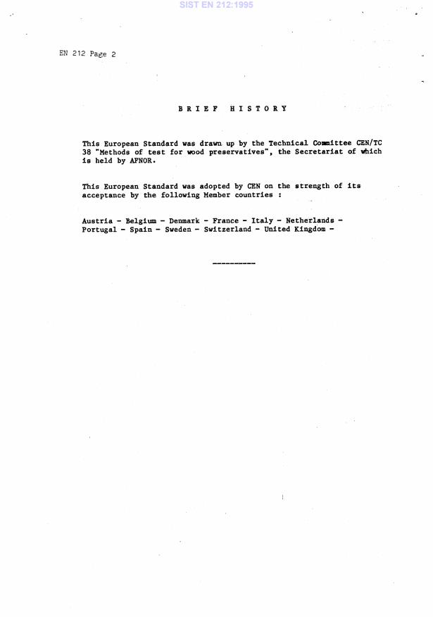 EN 212:1986 is a standard published by the European Committee for Standardization (CEN). Its full title is "Wood preservatives - Guide to sampling and preparation of wood preservatives and treated timber for analysis". This standard covers: Wood preservatives - Guide to sampling and preparation of wood preservatives and treated timber for analysis