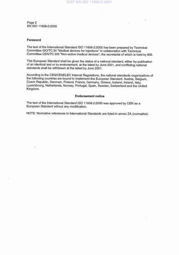 International Standard ISO 11608-2 was prepared by Technical Committee ISO/TC 84, Medical devices for