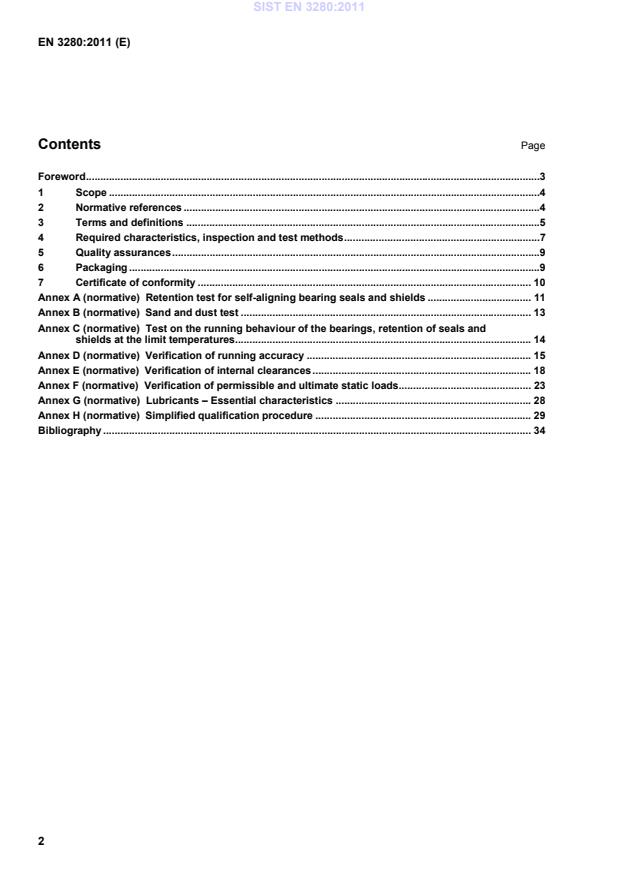- Internal clearances and static loads: Verification methods for radial, axial and diagonal clearances (Annex E) and tests for permissible and ultimate static loads (Annex F).