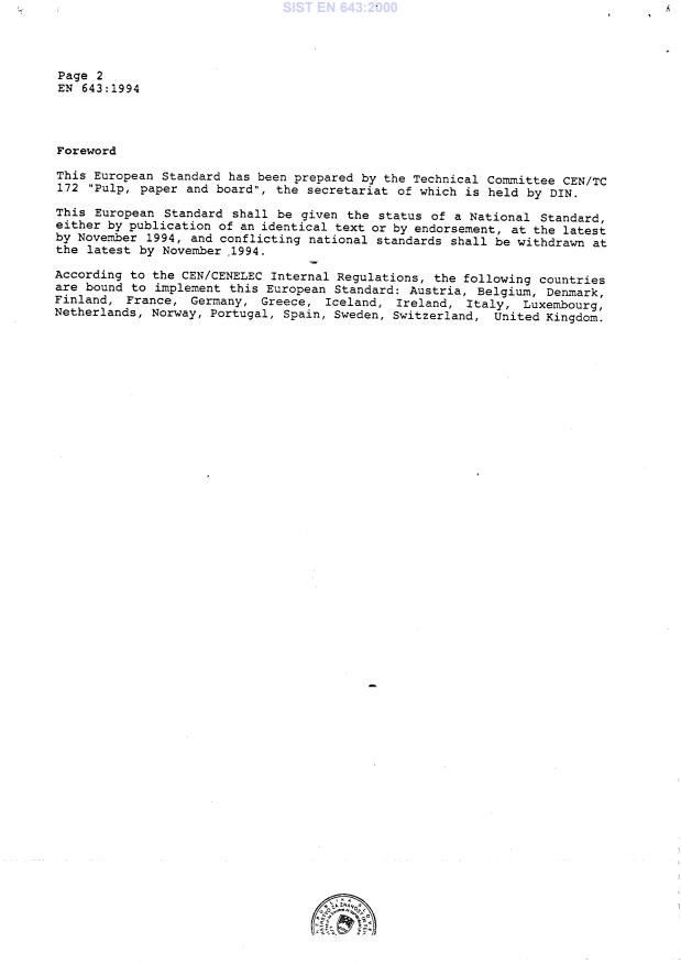 Ta slovenski standard je istoveten z: EN 643:1994