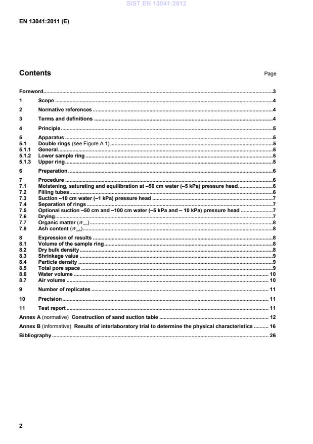 V tem evropskem standardu je opisana instrumentalna metoda za rutinsko določanje fizikalnih lastnosti, prostorninske gostote (suhe), kapacitete za vodo, kapacitete za zrak, vrednosti skrčenja in celotne poroznosti izboljševalcev tal ali rastnih substratov. Ta evropski standard ni ustrezen za zelo grobe materiale, materiale, ki ne vzpostavijo dobrega kapilarnega stika ali predhodno oblikovane materiale, ki nimajo delcev in imajo zaprto poroznost. Uporablja se za materiale z delci ≤ 25 mm in/ali prožnimi vlakni ≤ 80 mm.