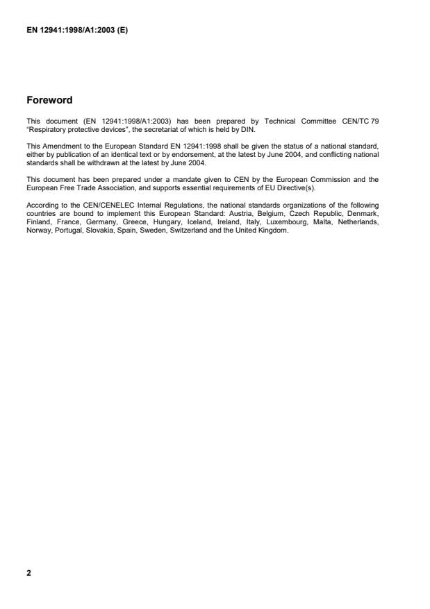 This amendment A1 modifies the European Standard EN 12941:1998; it was approved by CEN on 3 November 2003.