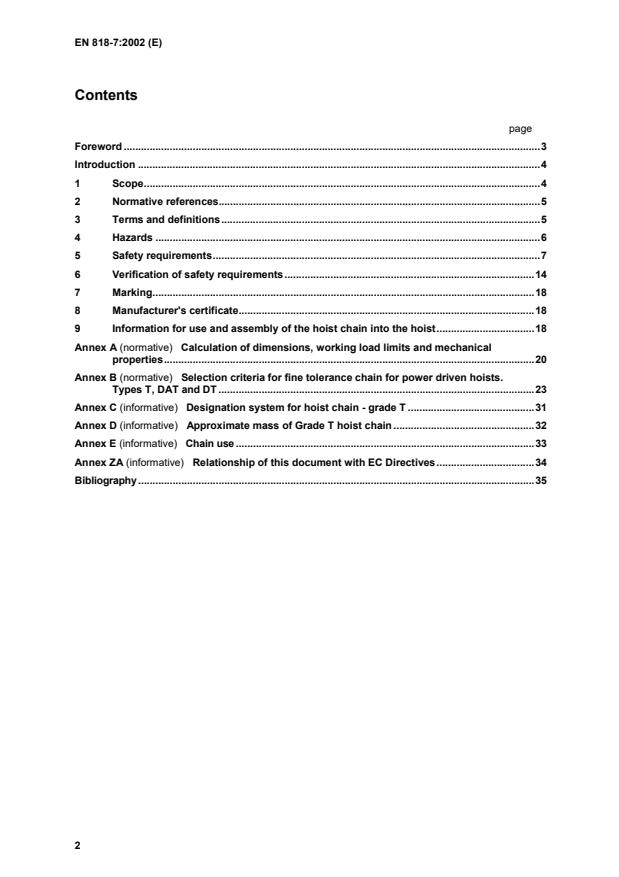 Dieser Teil von EN 818 legt Anforderungen in bezug auf Sicherheit von Hebezeugketten der Güteklasse T (Ausführung T vergütet und Ausführungen DAT und DT oberflächengehärtet) für den Einsatz in Serienhebezeugen und anderen Hebevorrichtungen fest. Hebezeugketten der Ausführungen DAT und DT besitzen eine höhere Oberflächenhärte als die Kernhärte und bieten einen höheren Verschleißwiderstand in motorisch angetriebenen Serienhebezeugen.