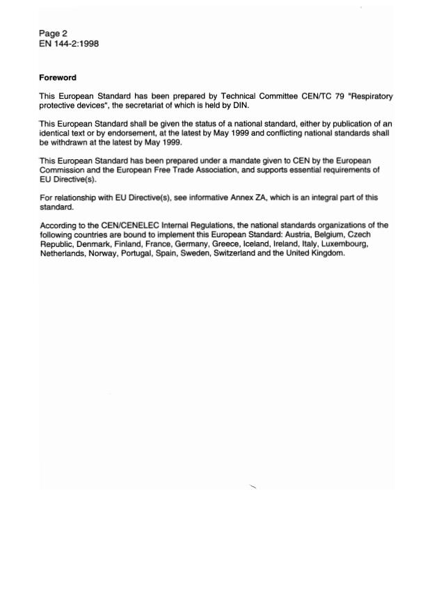 EN 144-2:1998 has the following relationships with other standards: It is inter standard links to EN 144-2:2018, EN 144-1:1991. Understanding these relationships helps ensure you are using the most current and applicable version of the standard.