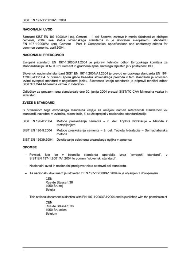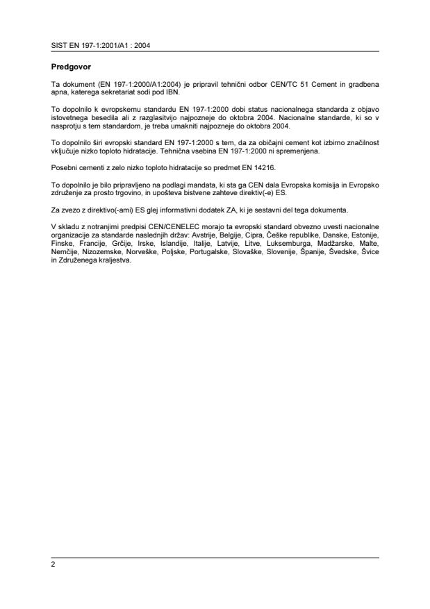 Ta slovenski standard je istoveten z: EN 197-1:2000/A1:2004