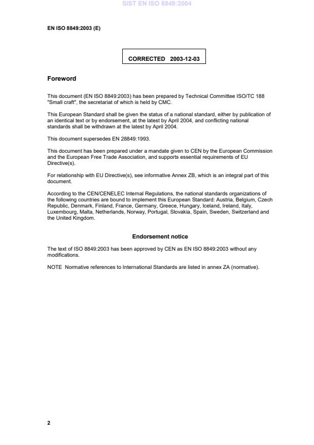 EN ISO 8849:2003 is associated with the following European legislation: EU Directives/Regulations: 2003/44/EC, 2013/53/EU, 94/25/EC; Standardization Mandates: M/075. When a standard is cited in the Official Journal of the European Union, products manufactured in conformity with it benefit from a presumption of conformity with the essential requirements of the corresponding EU directive or regulation.