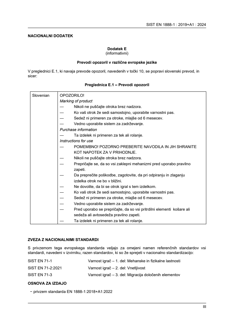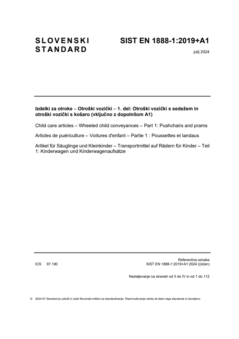 Standard SIST EN 1888-1:2019+A1 ((sl)en), Izdelki za otroke – Otroški vozički – 1. del: Otroški vozički