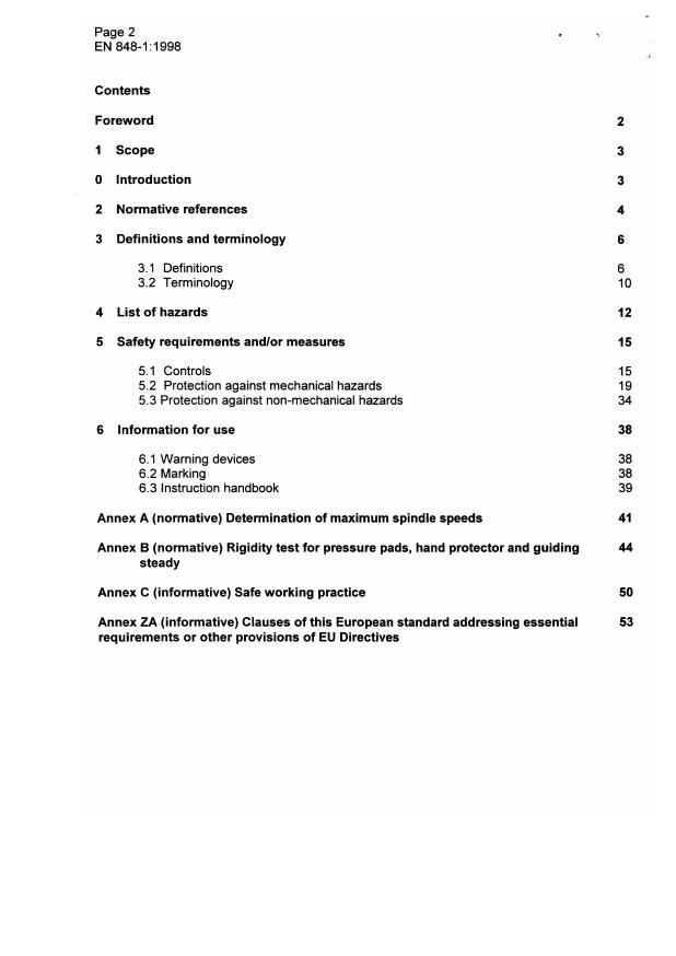 EN 848-1:1998 is a standard published by the European Committee for Standardization (CEN). Its full title is "Safety of woodworking machines - One side moulding machines with rotating tool - Part 1: Single spindle vertical moulding machines". This standard covers: This European Standard specifies the requirements and/or measures to remove the hazards and limit the risk on hand fed vertical spindle moulding machines, herein after referred to as "machines", designed to cut solid wood, chip board, fiberboard, plywood and also these materials where they are covered with plastic laminate or edgings. This European Standard covers all the hazards relevant to this machine. These hazards are listed in 4. This European Standard does not apply to machines set up on a bench or a table similar to a bench which are intended to carry out work in a stationary position and capable of being lifted by hand by one person. This European Standard does not apply to hand held woodworking machines or any adaptation permitting their use in a different mode, i.e. bench mounting and Numeric Control (NC). This European Standard is primarily applicable to machines which are manufactured after the date of issue of this standard. This European Standard does not apply to machines equipped with outboard bearings.