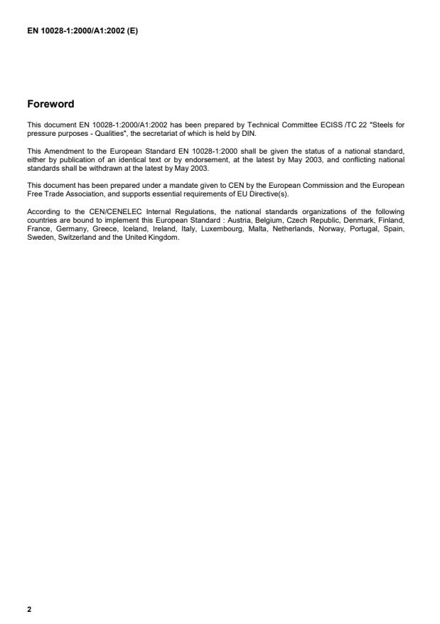 This document EN 10028-1:2000/A1:2002 has been prepared by Technical Committee ECISS /TC 22 "Steels for