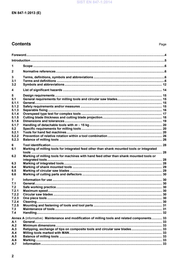 5.1 General requirements for milling tools and circular saw blades . 15