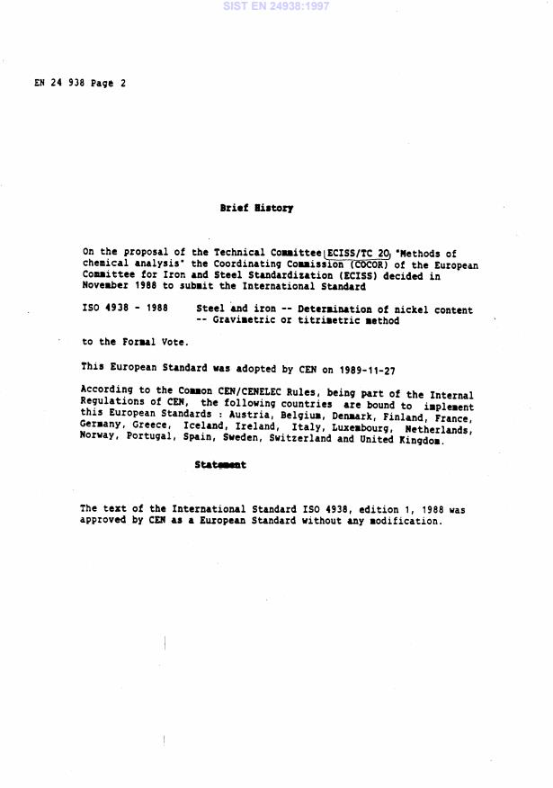 Steel and iron - Determination of nickel content - Gravimetric or titrimetric method (ISO 4938:1988)