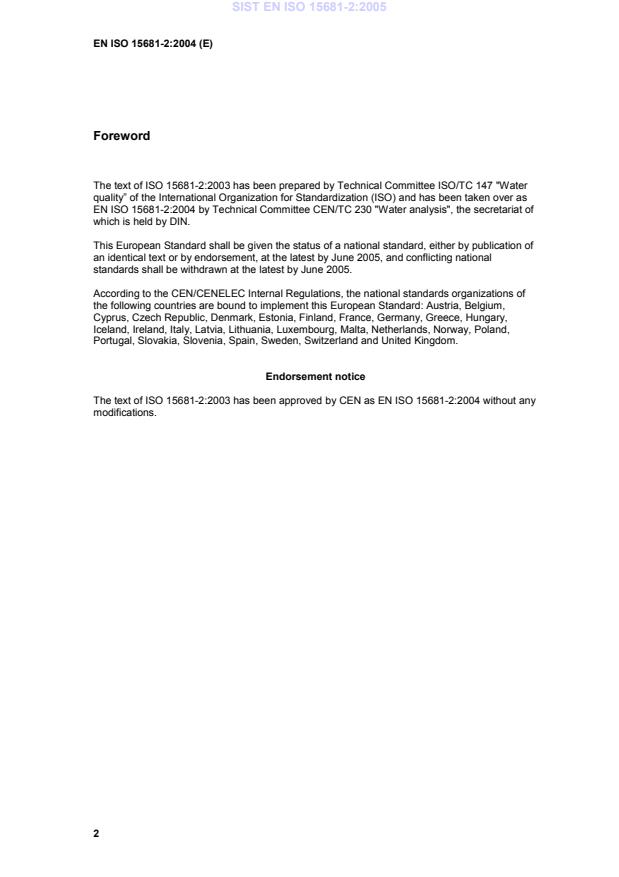 EN ISO 15681-2:2004 is classified under the following ICS (International Classification for Standards) categories: 13.060.50 - Examination of water for chemical substances. The ICS classification helps identify the subject area and facilitates finding related standards.