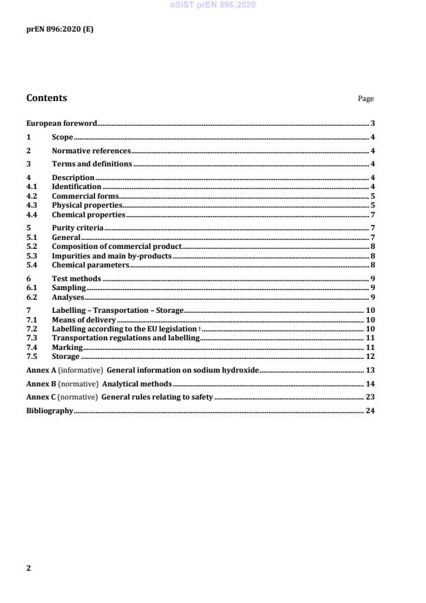 prEN 896 is a draft published by the European Committee for Standardization (CEN). Its full title is "Chemicals used for treatment of water intended for human consumption - Sodium hydroxide". This standard covers: This document is applicable to sodium hydroxide used for treatment of water intended for human consumption. It describes the characteristics and specifies the requirements and the corresponding test methods for sodium hydroxide. It gives information on its use in water treatment.