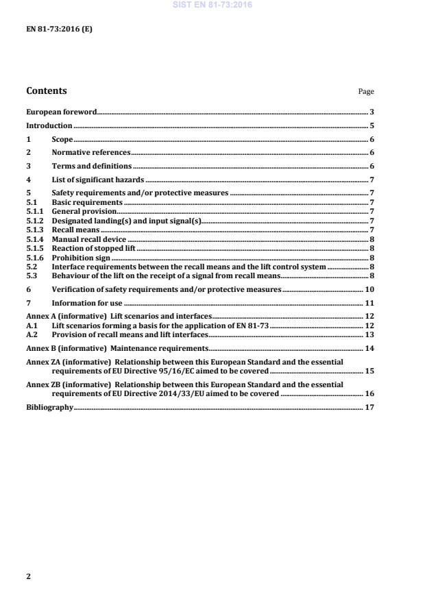 EN 81-73:2016 is a standard published by the European Committee for Standardization (CEN). Its full title is "Safety rules for the construction and installation of lifts - Particular applications for passenger and goods passenger lifts - Part 73: Behaviour of lifts in the event of fire". This standard covers: This European Standard specifies the special provisions and safety rules describing the behaviour of lifts in the event of fire in a building, on the basis of a recall signal(s) to the lift(s) control system. This European Standard applies to new passenger lifts and goods passenger lifts with all types of drives. However, it may be used as a basis to improve the safety of existing passenger and goods passenger lifts. This European Standard does not apply to - lifts that remain in use in the event of fire e.g. firefighters lifts as defined in EN 81 72, - lifts used for the evacuation of a building.