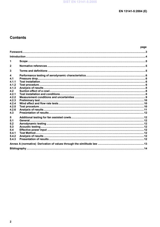 EN 13141-5:2004 is a standard published by the European Committee for Standardization (CEN). Its full title is "Ventilation for buildings - Performance testing of components/products for residential ventilation - Part 5: Cowls and roof outlet terminal devices". This standard covers: This document specifies methods for measuring the aerodynamic and acoustic characteristics of cowls and roof outlets used in both natural and mechanical ventilation. Only those cowls and roof outlets fitted onto ducts which project above the roof surface are covered by the present standard. Regarding the assisted cowls, only the fan assisted cowls are covered by the present standard, other types (such as injection assisted cowls) being too recent to be adequately considered for the time being. The performance testing of the "assistance" provided by the auxiliary fan of an assisted cowl is excluded for the scope of this standard.