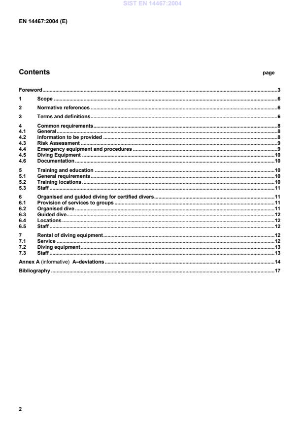 EN 14467:2004 is a standard published by the European Committee for Standardization (CEN). Its full title is "Recreational diving services - Requirements for recreational scuba diving service providers". This standard covers: This European Standard specifies requirements for service providers in the field of recreational scuba diving. It specifies three areas of service provision: ¾ training and education, ¾ organised and guided diving for certified divers, ¾ rental of diving equipment. Service providers may offer one or more of these services. This European Standard specifies the nature and quality of the services to the client and applies only to contractual provision of those services.