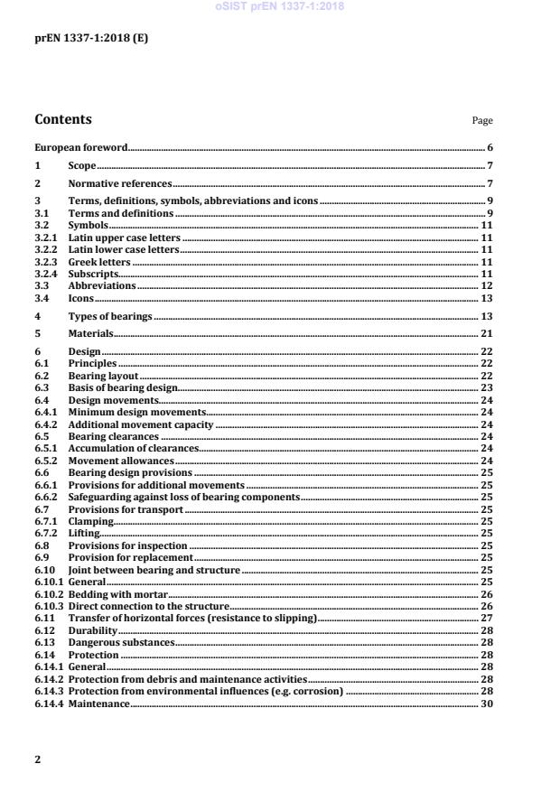 Keywords: Structural bearings standard, prEN 1337-1, structural bearing design, bridge bearings, bearing installation, bearing inspection, bearing maintenance, bearing manufacturing, CEN standards, civil engineering bearings, anti-seismic bearing devices, bearing transport and storage, elastomeric bearings, pot bearings, sliding bearings, structural load transfer.
