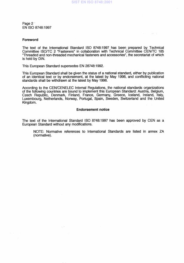 EN ISO 8748:1997 is classified under the following ICS (International Classification for Standards) categories: 21.060 - Fasteners. The ICS classification helps identify the subject area and facilitates finding related standards.