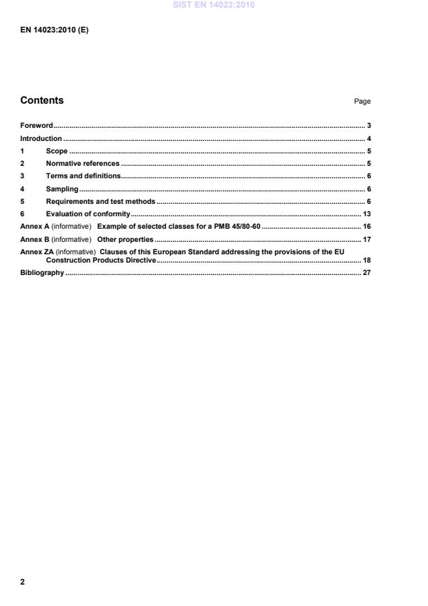 EN 14023:2010 is the CEN European standard that establishes a specification framework for polymer modified bitumens (PMB) used in the construction and maintenance of roads, airfields and other paved areas. Published in April 2010 (superseding EN 14023:2005), the document defines which material characteristics should be specified, the relevant test methods, and a practical grading/nomenclature system for PMB products.