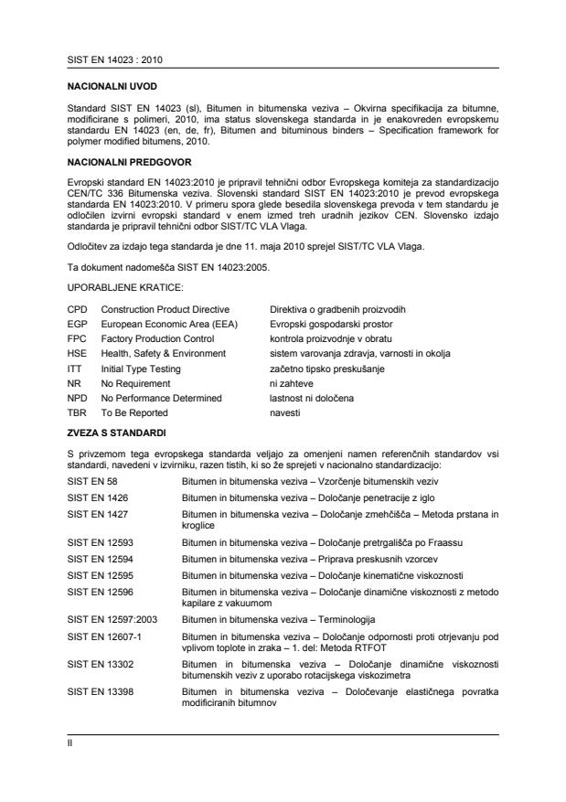 bitumne, modificirane s polimeri. Povezane so z zakonodajo ali zahtevami HSE. Lastnosti v preglednici 2