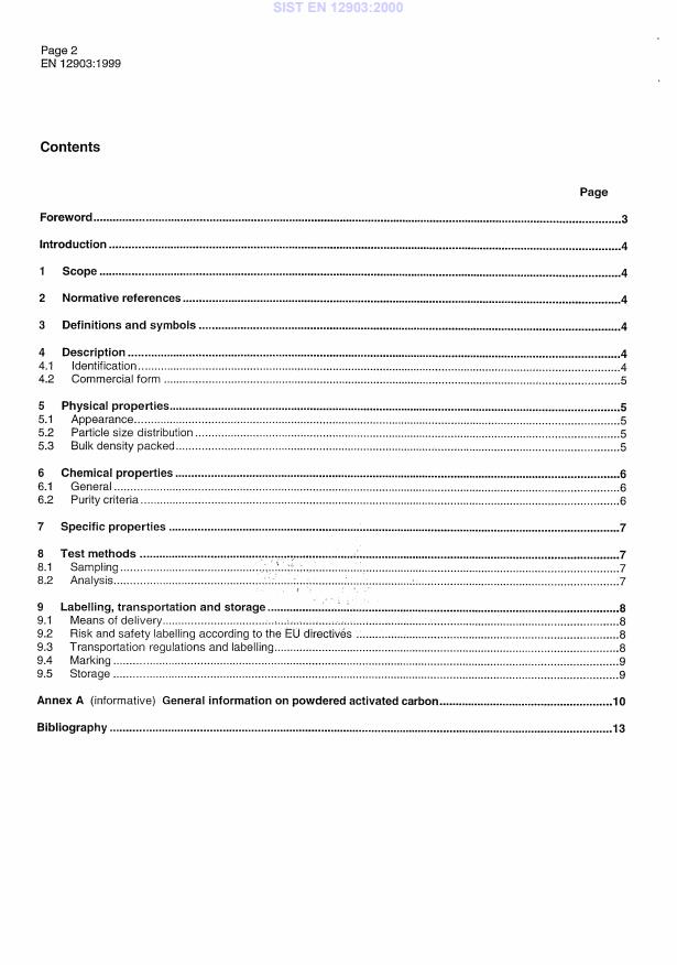 EN 12903:1999 is a standard published by the European Committee for Standardization (CEN). Its full title is "Products used for treatment of water intended for human consumption - Powdered activated carbon". This standard covers: This European Standard is applicable to powdered activated carbon used for treatment of water intended for human consumption. It describes the characteristics of powdered activated carbon and specifies the requirements and the corresponding test methods for powdered activated carbon. It gives information on its use in water treatment.