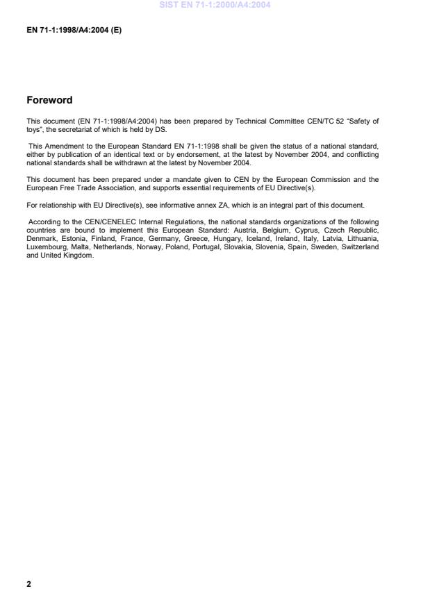 This amendment A4 modifies the European Standard EN 71-1:1998; it was approved by CEN on 2 January 2004.