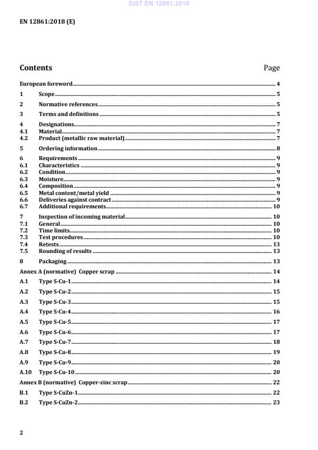 Copper-zinc scrap . 22 B.1 Type S-CuZn-1 . 22 B.2 Type S-CuZn-2 . 23 SIST EN 12861:2018